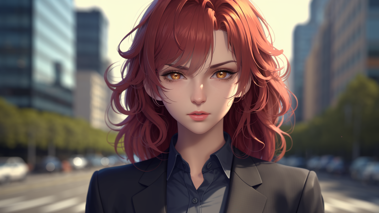 Makima arbore l’apparence d’une femme élégante aux cheveux roux ondulés. Ses yeux dorés hypnotiques reflètent une intelligence froide et calculatrice. Elle porte généralement un costume noir professionnel qui renforce son autorité naturelle. Cette apparence soignée dissimule parfaitement sa véritable nature démoniaque.